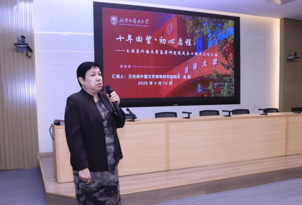 会上,王佐良外国文学高等研究院院长金莉做研究院成立十周年工作汇报。她介绍,高研院自2016年成立以来,始终致力于建设跨院系、跨语种的创新研究平台。十年来,高研院持续打造“北外王佐良讲堂”品牌,邀请国内外知名学者举办高水平讲座43期;积极搭建学术交流平台,举办各类学术会议30余场;系统推进“外国文学研究文库”“外国文学研究丛书”“外国文学通览”“新编外国文学简史丛书”等系列出版项目,其中“外国文学通览”已连续出版九部,成为展现北外多语种优势的学术品牌。此外,王佐良外国文学研究奖已成功评选三届,被誉为除教育部科研成果奖之外国内最具影响力的外国文学研究大奖。目前,高研院正以国家社科基金重大项目“21世纪英语文学纪事与研究”为抓手,持续推进外国文学研究的创新发展。