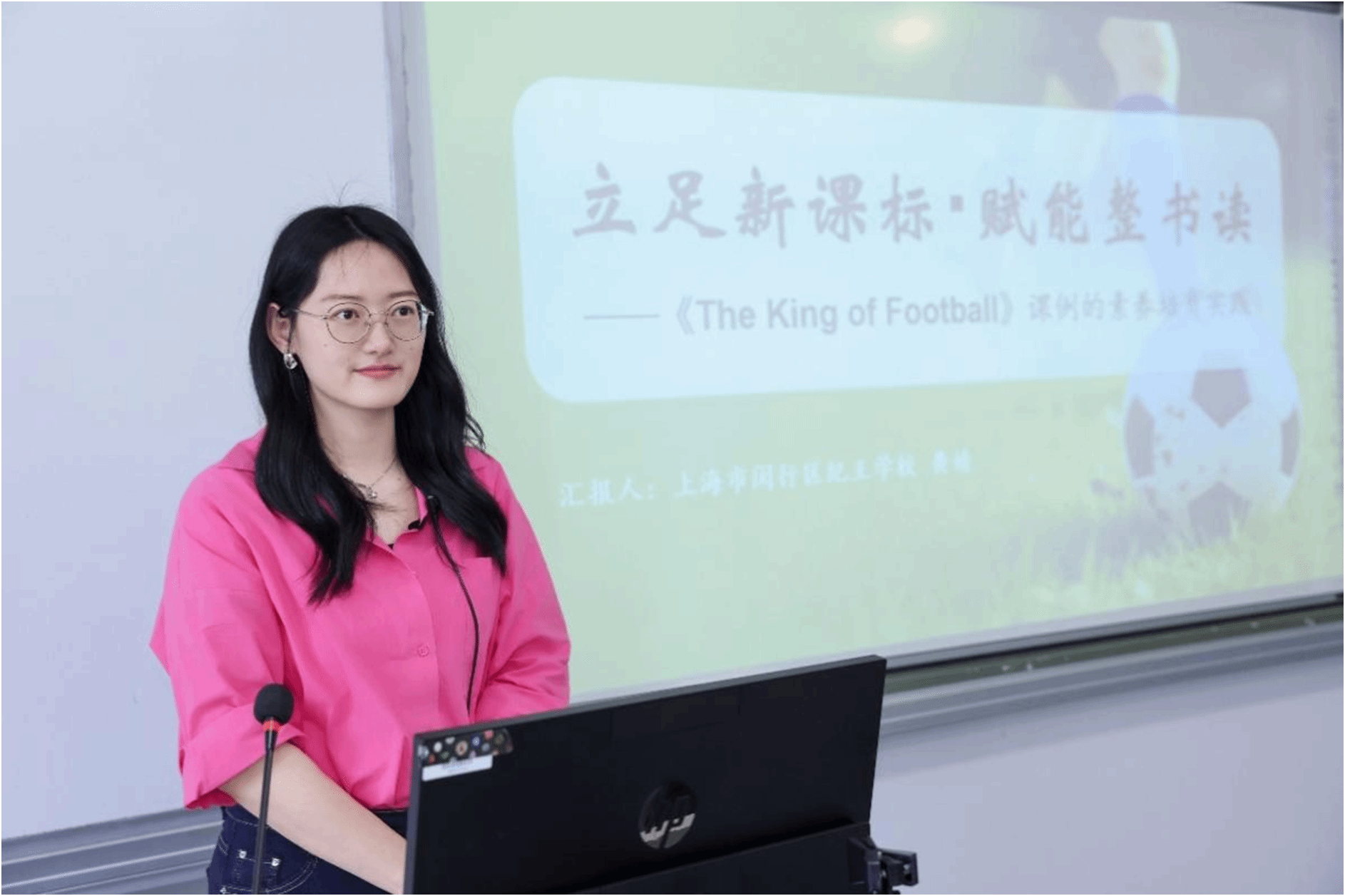 英语系主任马拯副教授主持。上海市闵行区纪王学校张莉副校长以“‘融’聚阅读力量,‘和’育英语素养”为题,分享了学校全学段英语整书阅读项目实践经验。她从课程教学、校园活动、教师发展、综合评价四大维度,展示了如何通过多维度融合实践,让整书阅读融入校园生活方方面面,提升学生英语核心素养,并表示,将进一步深化理论学习应用、加强推广与分享、推动创新与发展。