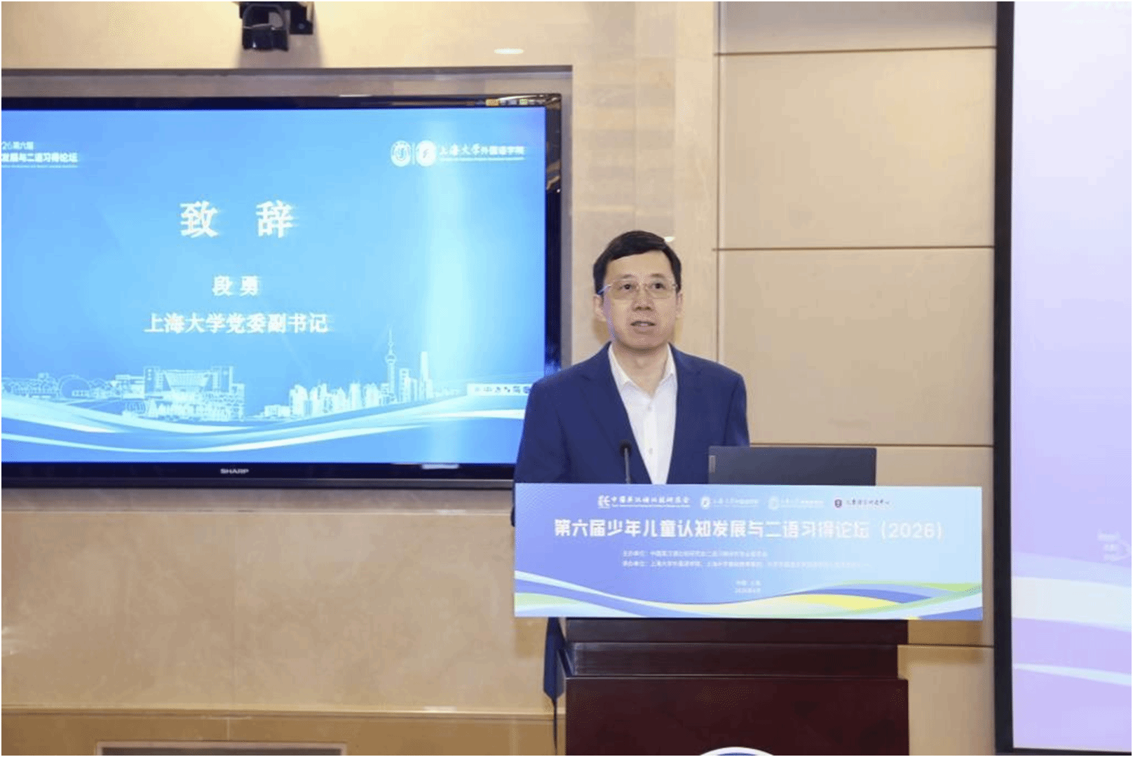 外语学科建设进展以及与上海大学基础教育集团和北京外国语大学儿童语言研究中心的合作情况。他指出,少年儿童是国家的未来,提升儿童外语教育质量是新时代赋予外语教育工作者的重要使命,希望通过本次论坛的深入研讨,进一步厘清儿童认知发展与语言习得的内在规律,探索出更多符合中国儿童特点的外语教育路径,开发出更多优质的教育资源。