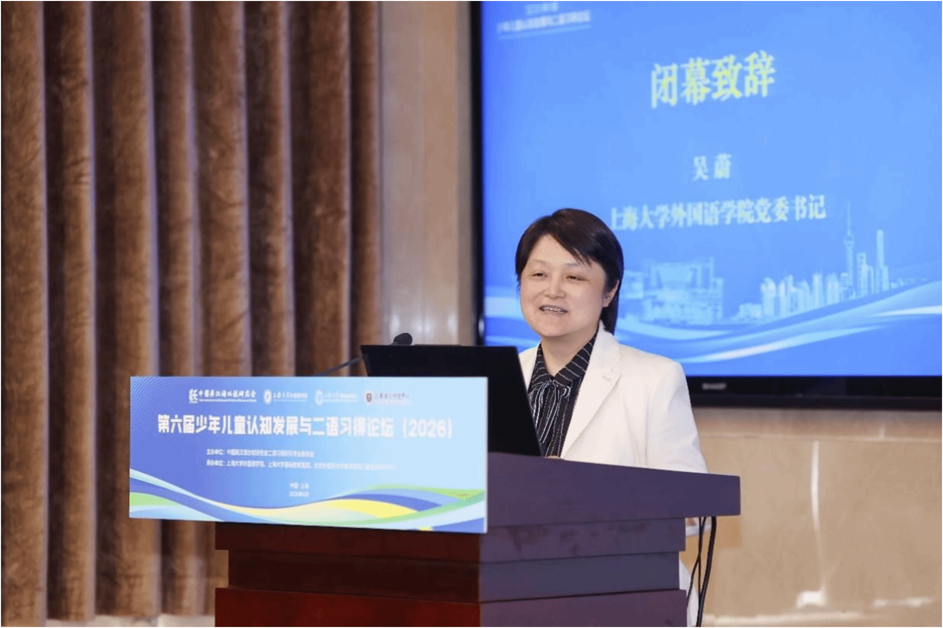 表示感谢,她指出,当前儿童二语习得研究应聚焦认知发展规律、外语学科素养及人工智能技术应用等方向。外语基础教育中的教育公平、教师专业发展瓶颈、技术融合与数字化转型仍面临重要挑战。她呼吁与会学者共同努力,携手书写儿童二语习得的新篇章。