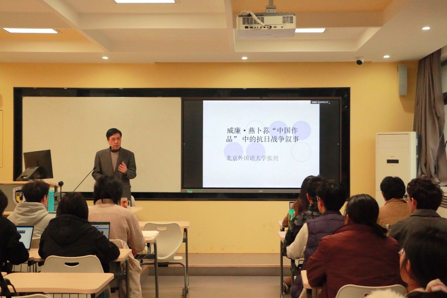 张剑教授应邀作题为“威廉·燕卜荪诗歌中的抗日战争与诗学再现”的学术讲座。活动吸引了近百名师生到场聆听,现场气氛热烈。