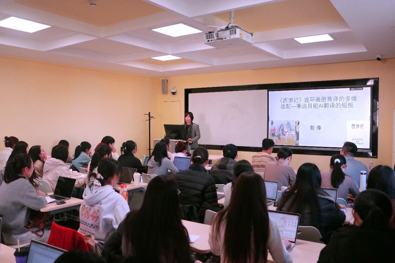 彭萍教授应邀作题为“《西游记》连环画册英译的多维适配——兼谈目前AI翻译的短板”的讲座,吸引了上百名师生到场参加。