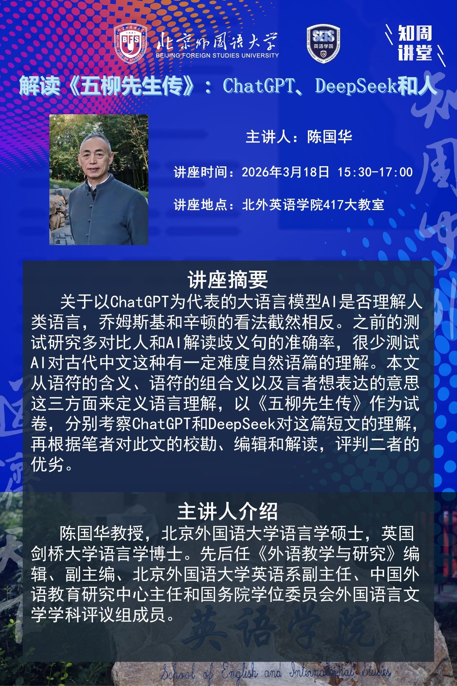 3月18日讲座:解读《五柳先生传》:ChatGPT、DeepSeek和人