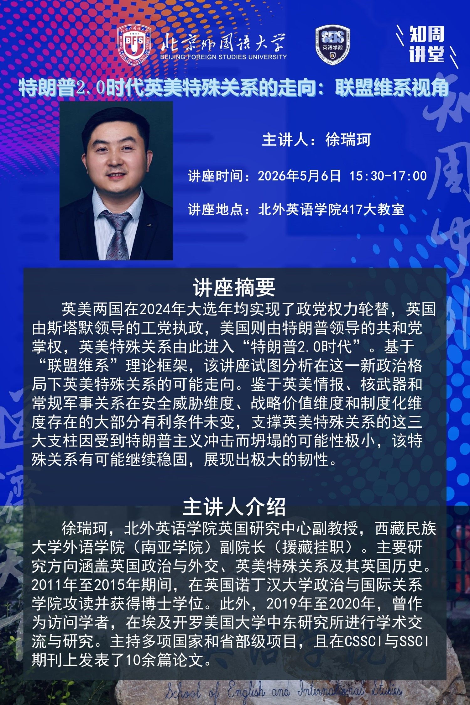 5月6日讲座:特朗普2.0时代英美特殊关系的走向:联盟维系视角
