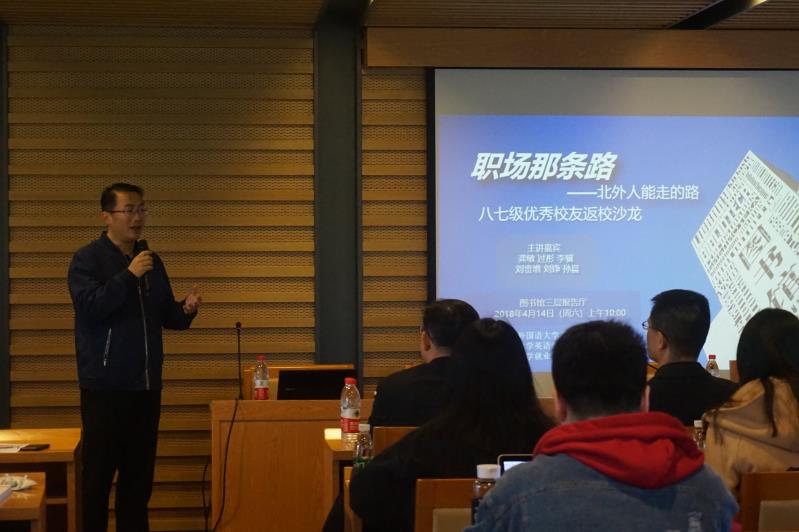 八七级优秀校友返回北外参加了在图书馆三层报告厅举办的“职场那条路——北外人能走的路”校友沙龙。